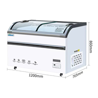 Thương Mại Glass Top Ngực Tủ Đông Siêu Thị Ice Cream Đảo Tủ Đông Với Kính Cong Cửa Trượt Cắm Trong Đảo Tủ Đông