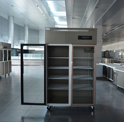 Thương mại Nhà bếp thép không gỉ thẳng đứng Tủ đông nhà hàng tiếp cận trong tủ lạnh với đôi cửa kính cửa hiển thị mát